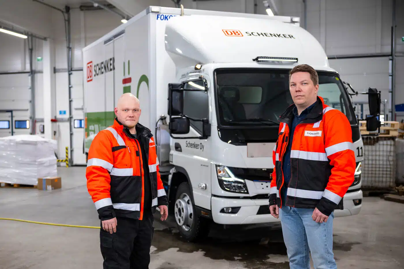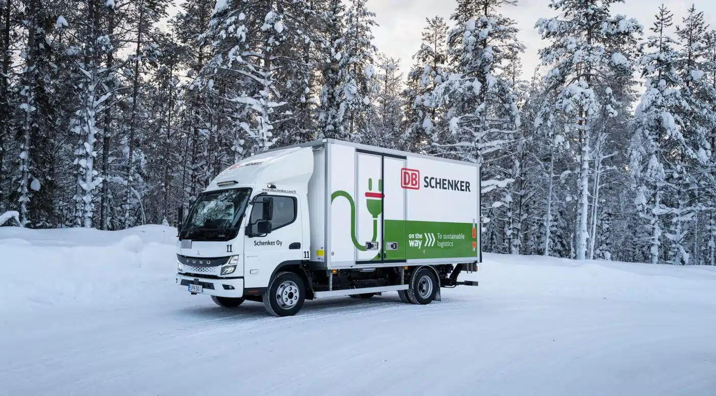 Zufrieden ist er in seiner Funktion als Terminalleiter auch mit der Nutzlast des 7,49-Tonners. Die liegt trotz der Batterien bei 3.200 kg. Mit einem Radstand von 3.400 mm kann der eCanter in dieser Konfiguration außerdem bis zu 15 Palettenstellplätze bieten. „In den passt gut was rein. Damit können wir die anderen beiden Lkw wirklich unterstützen“, erklärt Sami Määttä. Einziges Manko: Die Heizung an der Stirnwand des Kofferaufbaus läuft aktuell noch über einen zusätzlichen kleinen Biodiesel-Tank. Diese lokale Spezialanforderung ist den eisigen Temperaturen geschuldet und nötig, um sensible medizinische Produkte zu transportieren, die nicht einfrieren dürfen. Das ließ sich leider noch nicht elektrisch lösen, da es zu viel Energie aus den Fahrbatterien ziehen würde.